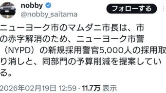 ニュー速 NYマムダニ市長、市の赤字解消のため警官5,000人の新規採用取り消しと同部門の予算削減を提案