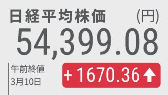 ニュー速+ 【株価】日経平均、終値は1519円67銭高の5万4248円39銭