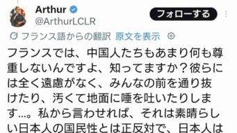 ニュー速 フランス人「日本人のみんなは中国が嫌い?そりゃそうだわフランスでも嫌われてるし中国人」