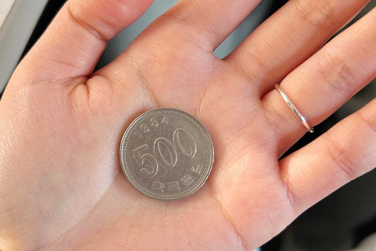 投稿者の女性は韓国の500ウォン(約50円)硬貨の写真を投稿し、「買い物の時に500円玉で支払おうとしたら店員に
