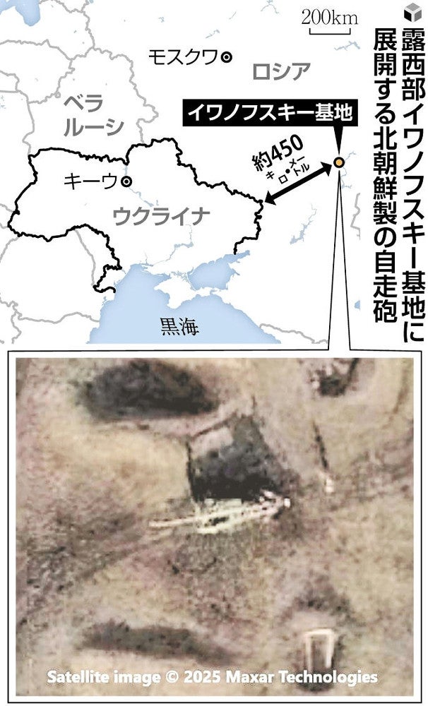 車体や砲身の特徴から、北朝鮮製の可能性が高いと指摘した。イワノフスキー基地はウクライナ国境から約450キロ・メートル離れている。自走砲の射程は約40~60キロ・メートルと