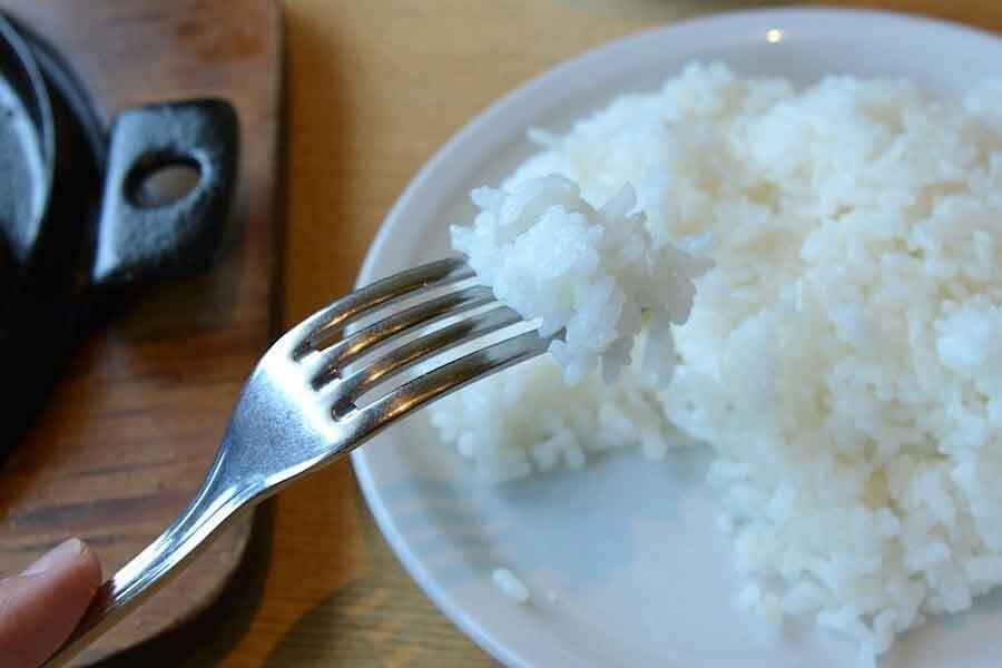 ライスをフォークの背にのせて口元に運ぶのは、不安定で落としてしまうリスクがあります。