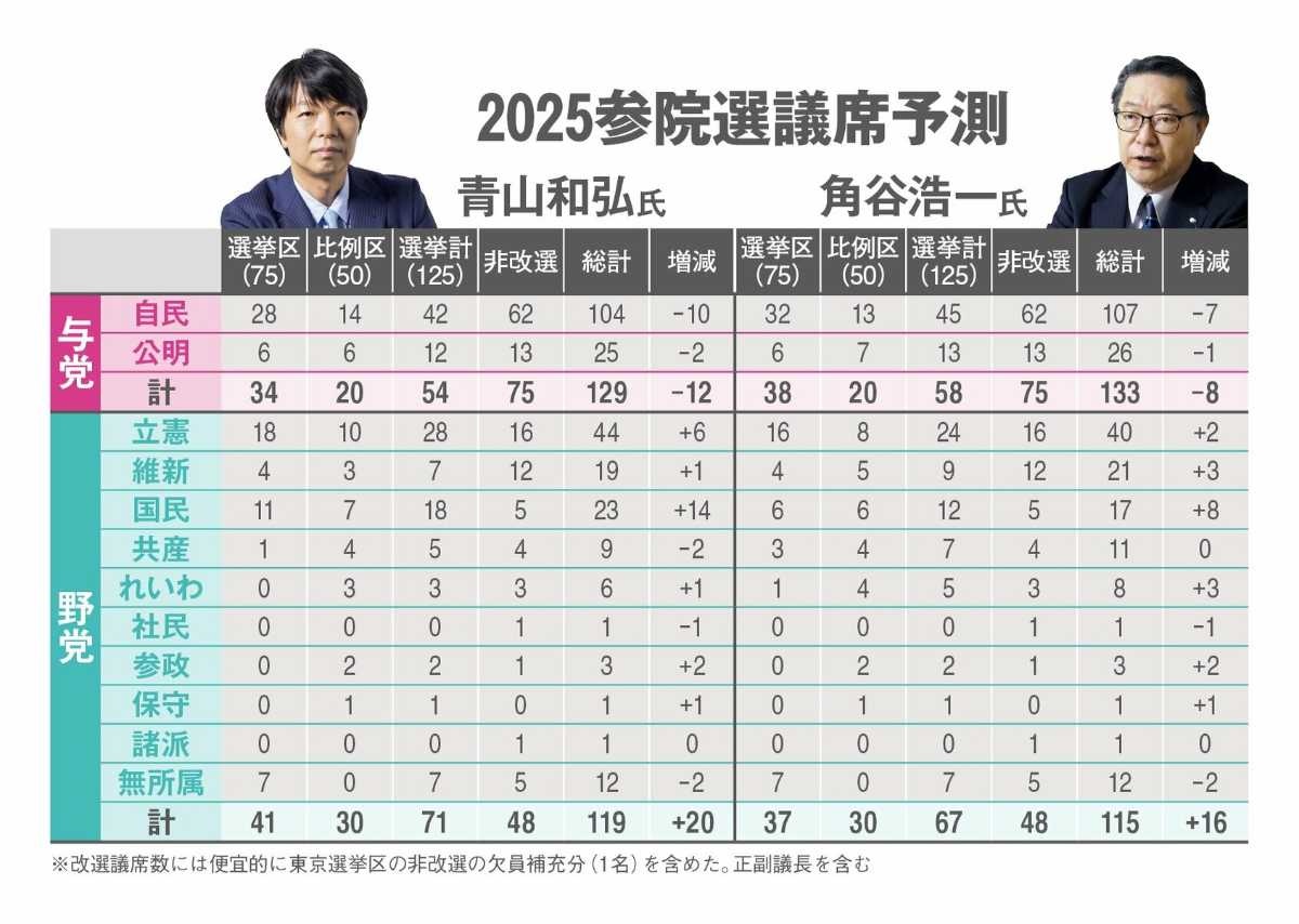 【AERA・青山和弘氏、参院選議席予測】自民42、立憲28、国民民主18、公明12、維新7、共産5、れいわ3、参政2