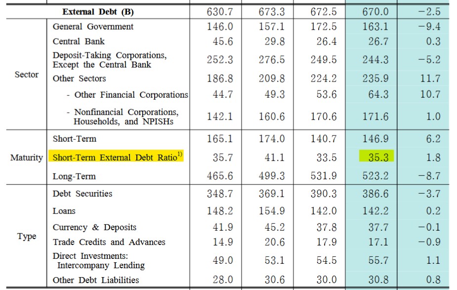 https://www.bok.or.kr/eng/bbs/E0000634/view.do?nttId=10089990&menuNo=400423&relate=Y&depth=400423&programType=newsDataEng面白いというのは「短期対外債務の対外貨準備比率」(Short-Term External Debt Ratio)です。