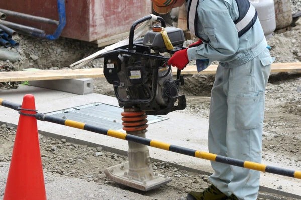 > プレートの方が転圧盤が大きく振動が小さいので、広い範囲を平らにならすのに適しています。なるほどぉー