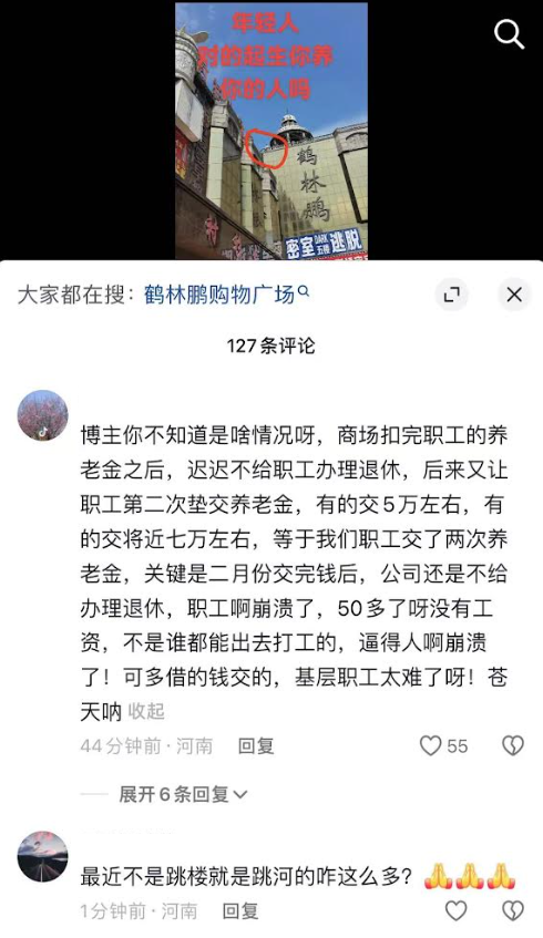 ヘリンペン・ショッピングモールは従業員の退職を遅らせ、退職金の支払いを2度求めたにもかかわらず、未だに手続きが行われていない。従業員は最終的に、賃金の支払いを求めてビルから飛び降りざるを得なくなった。 - 2 : 2025/06/16(月) 09:38:41.14 ID:A7xbCVeD0
