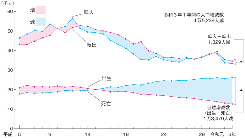 大阪は転入超過なのに自然減がそれ以上に多いから毎月数千人ずつ人口減少してるんだよな