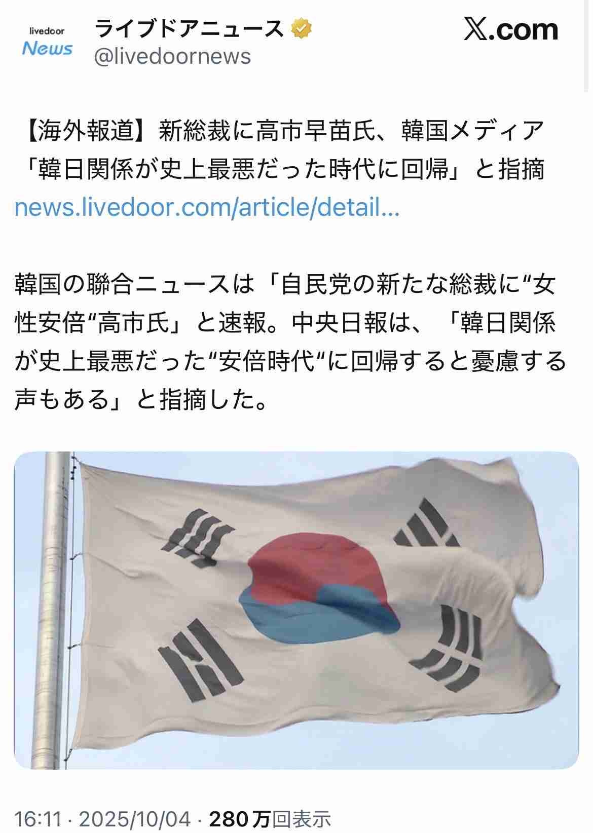 つまりそういうことだ(まあ石破を歓迎というよりは高市じゃなかったよかったーな感じだったのかもだが) - 40 : 2025/10/05(日) 19:15:02.72 ID:KqQBsyb40