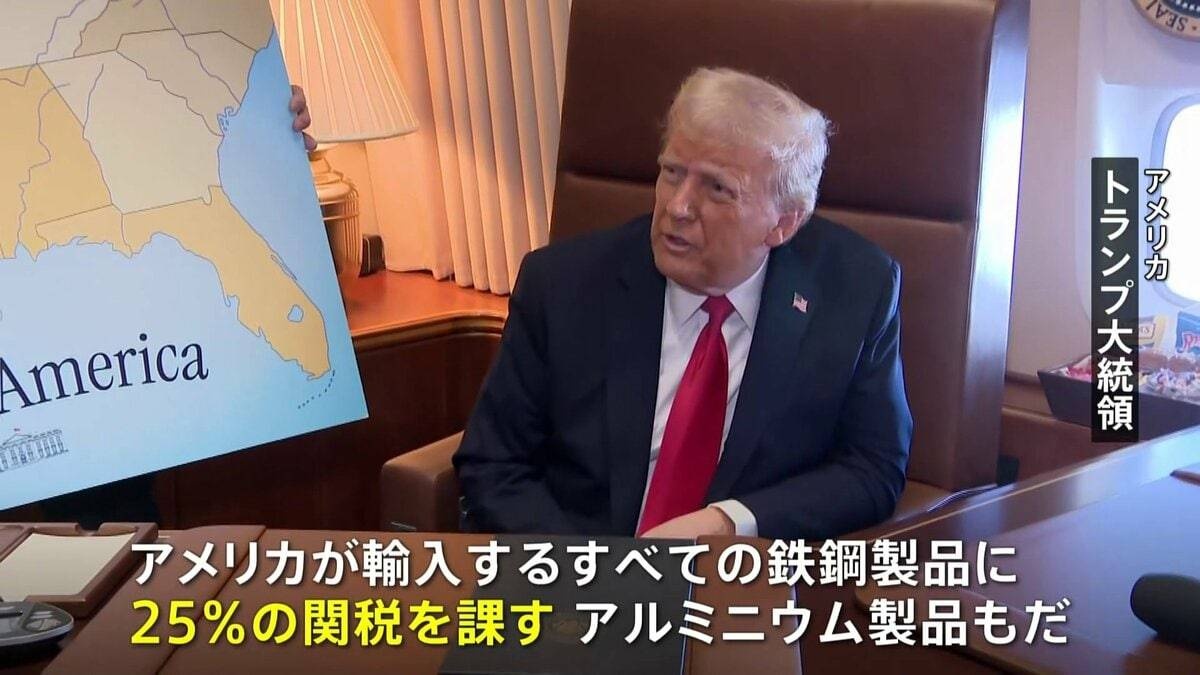 「アメリカが輸入するすべての鉄鋼製品に25%の関税を課す。アルミニウム製品もだ」トランプ氏は9日、大統領専用機の中でこのように述べたうえで、10日に記者会見して詳細を発表すると述べました。
