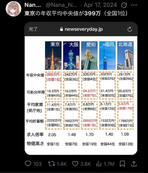 いくら全国で一番給料高くても家賃が高すぎて最終的に地方より使える金が少ないs://i.imgur.com/nU37Lwd.jpeg