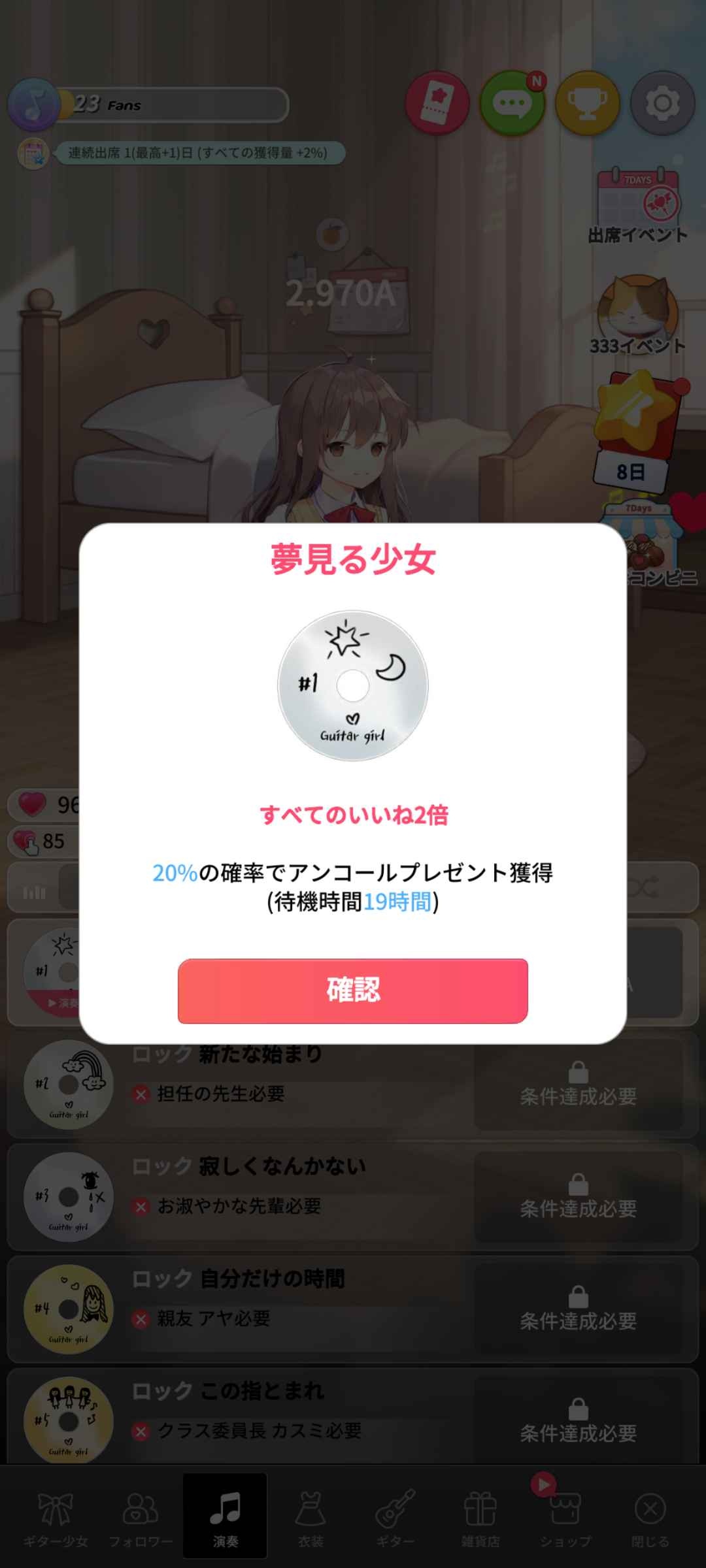 - 本作は、ギター演奏で心を癒す放置系ゲームです。配信をすることでフォロワーを増やし、少女の音楽をたくさんの人に届けるのが目的です。