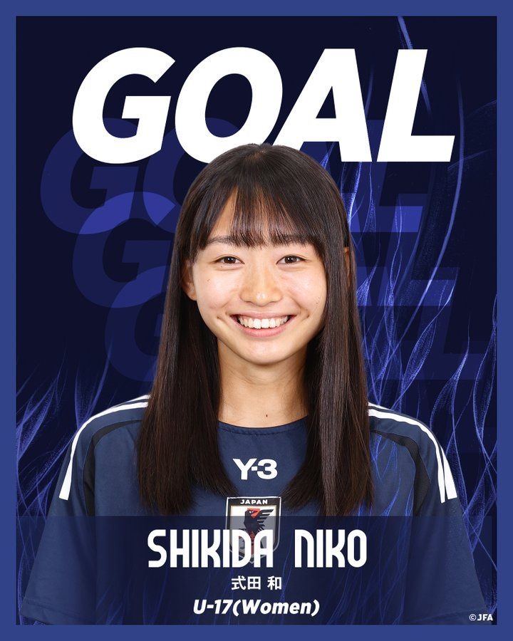 膝をつく松岡瑛茉と須永穂乃果の足に式田が乗り、青木が王冠のようなジェスチャーで得点を祝福した。初戦白星スタートのU-17日本女子代表は、22日に行われる第2節でU-17ザンビア女子代表と対戦する。