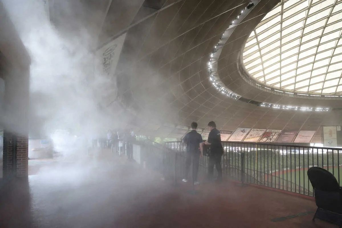 【ベルーナドーム】夏季の暑さ対策 大規模ミスト設備の運用開始 真下はマイナス5度