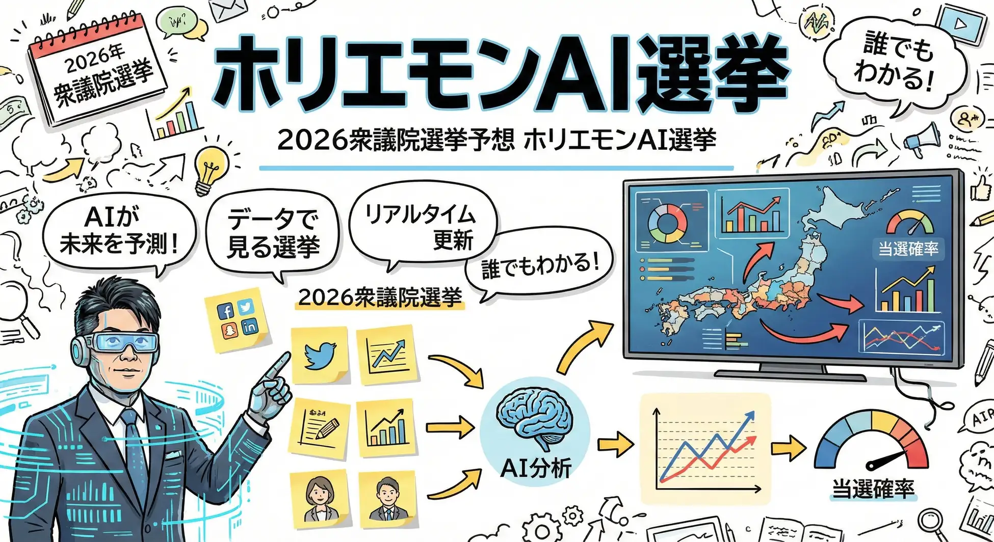 ホリエモンAI学校株式会社(東京都新宿区 代表取締役CEO 荒木賢二郎)は、2026年に実施予定の衆議院議員総選挙に向け、AIによる選挙情勢分析サービス『ホリエモンAI選挙』を公開した。