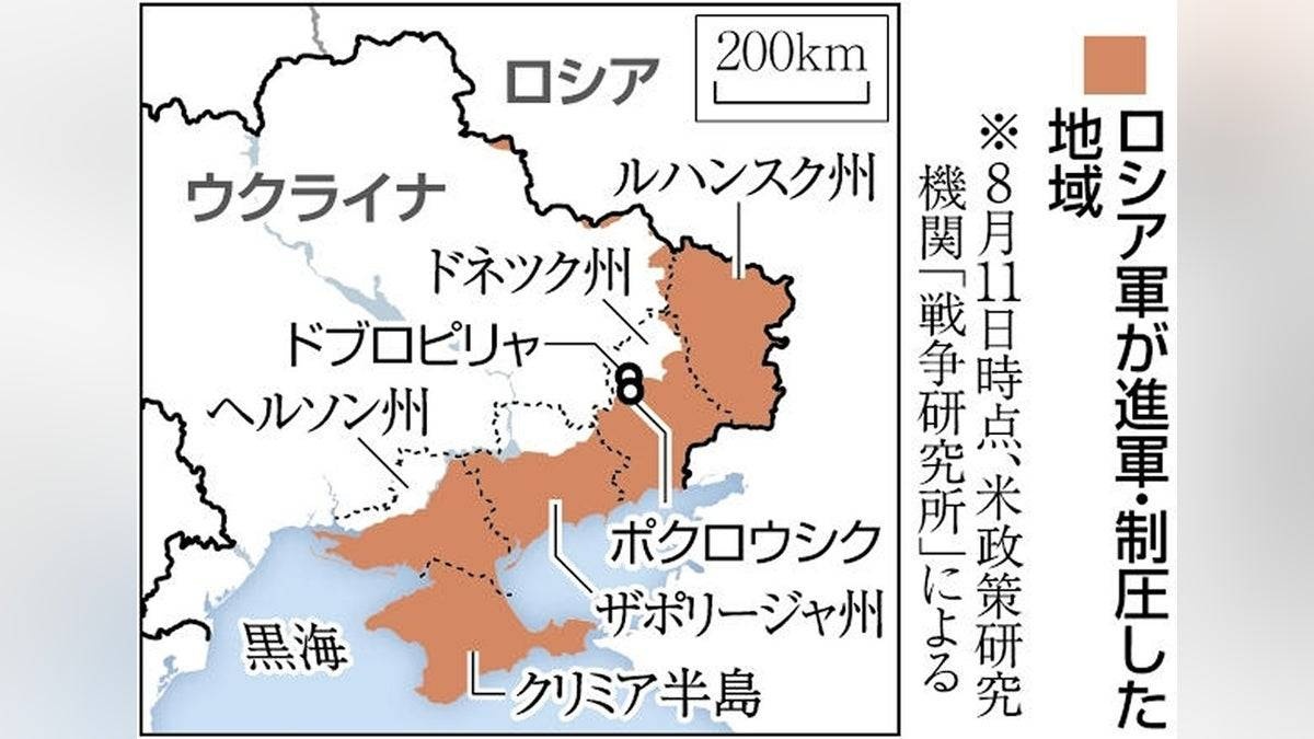 戦況を分析しているウクライナの団体によると、露軍は、攻防戦を続ける同州の要衝ポクロウシクから北方の炭鉱都市ドブロピリャ近くまで進軍した。