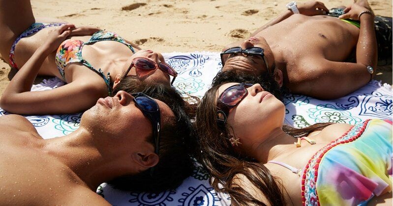 海もプールも大きな公園も日光浴する人だらけで、サンオイルは飛ぶように売れていたし、「コーラを塗ると早く黒くなる」といった噂もあって、実際それを試す人もちらほらみかけられた