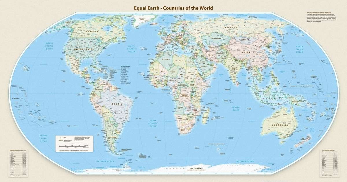 広く用いられる「メルカトル図法」の代わりに、面積が正確に反映される「イコールアース図法」を採用するよう訴えている。