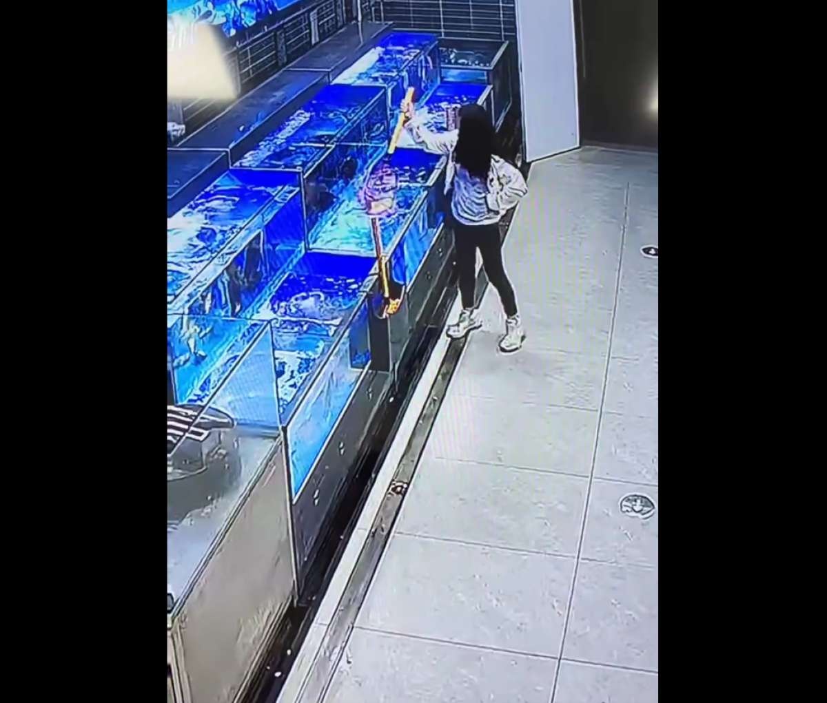 中国メディアによると、騒動があったのは今月8日。現場の監視カメラの映像には、女性が網でいけすの魚をすくい、周囲をうかがいながら床に置いて何度か踏み付けて魚を死なせる様子が映っている。女性はその後、死んだ魚を再びいけすに戻した。