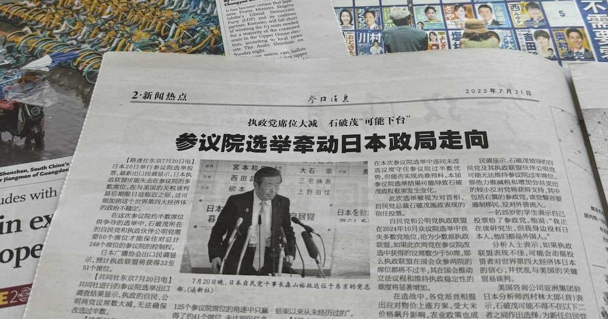 中国国営中央テレビ(電子版)は21日、今回の「歴史的な惨敗」を受け、自民党内で石破首相の辞任を求める声が高まっていると指摘。