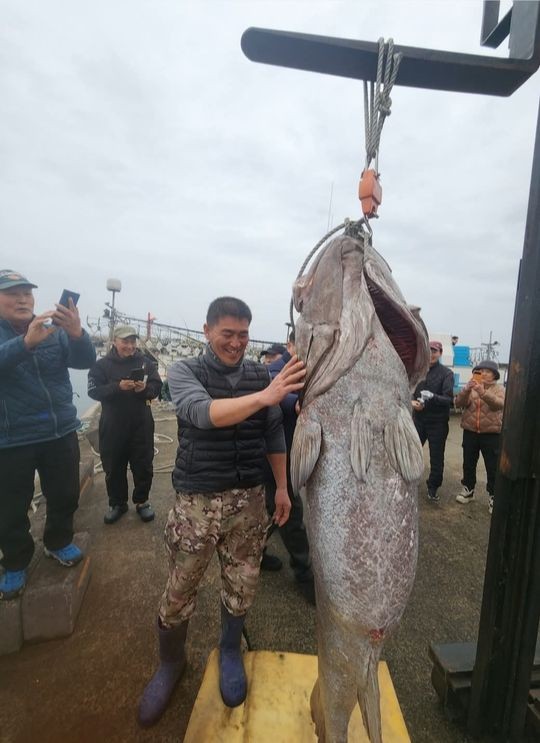 「伝説の深海魚」と呼ばれる大型イシナギが済州(チェジュ)の海で釣り上げられた。