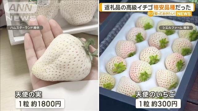 - >「天使の実」が1粒およそ1800円なのに対し、「天使のいちご」は1粒300円