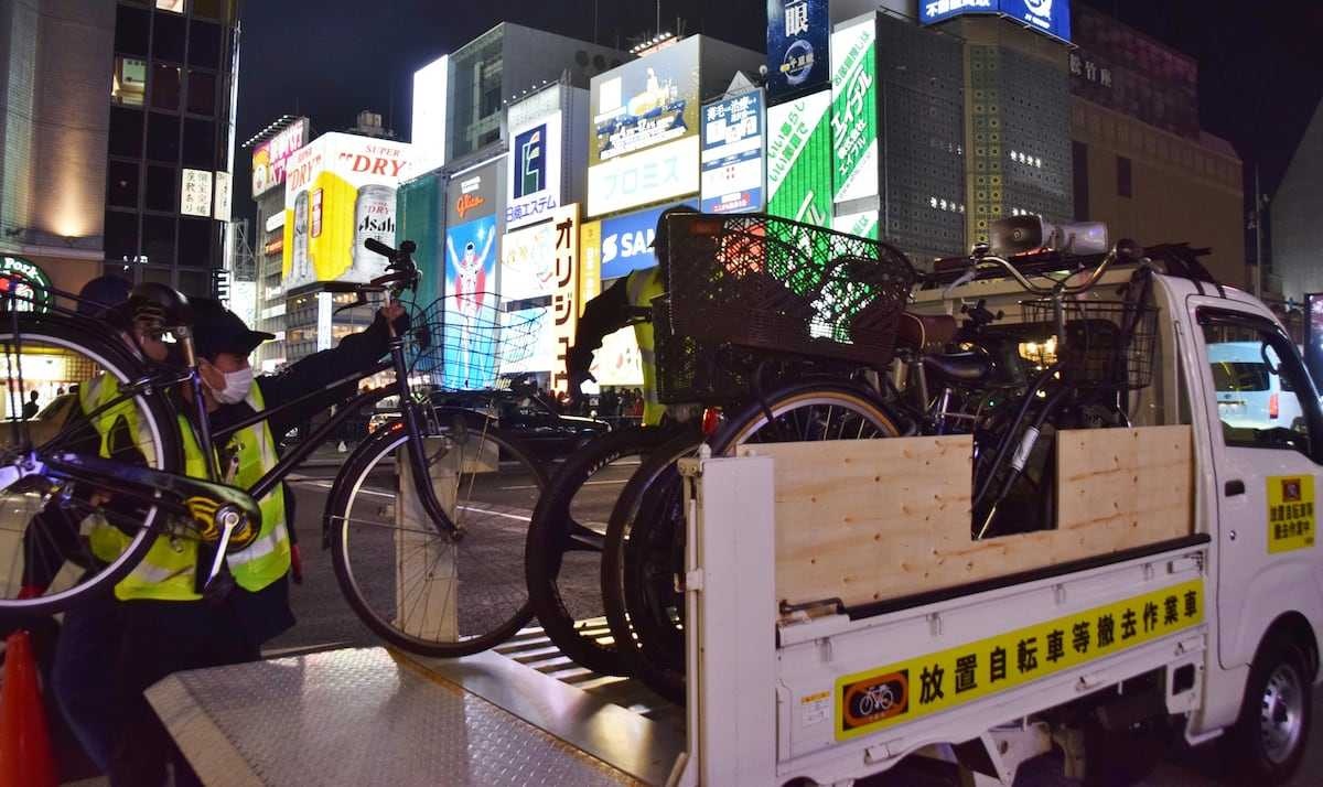 大阪市では5年11月から、繁華街などで放置自転車を見つけ次第、即時撤去する「リアルタイム撤去」を始めている。