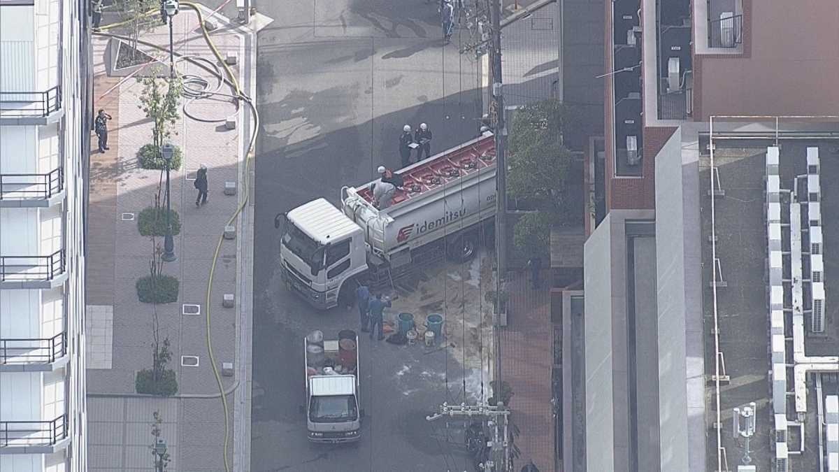 大阪・本町で、自損事故を起こしたタンクローリーからガソリンが流出し、消防が対応にあたっています。