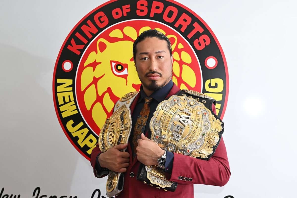 辻は4日東京ドーム大会でKONOSUKE TAKESHITAとのIWGP世界とIWGP GLOBALヘビー級ダブル王座戦を制し2冠王者に。5日大田区大会ではIWGP世界ではなく、封印されていた4代目IWGPヘビーのベルトを持参した。