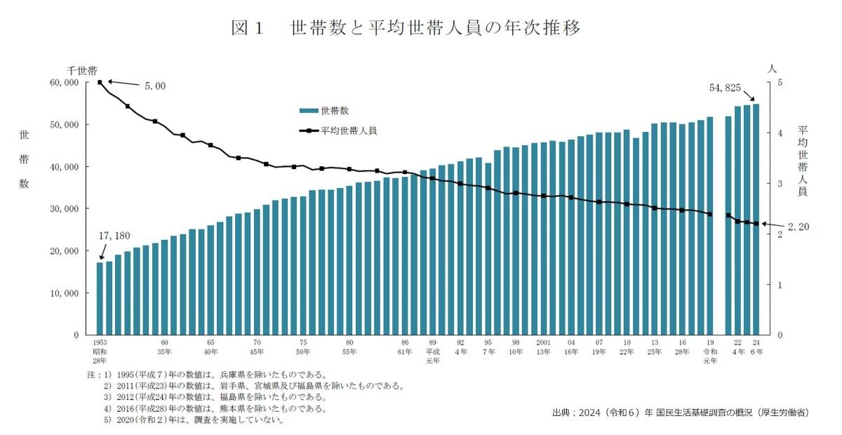 厚生労働省が7月4日に発表した「2024年国民生活基礎調査」で、日本の世帯構造が大きく変化している実態が浮き彫りになっています。
