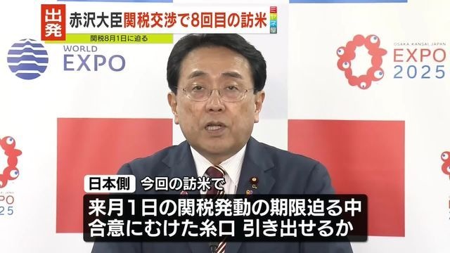 【日米】赤沢大臣、ワシントンへ出発 関税交渉で8回目の訪米