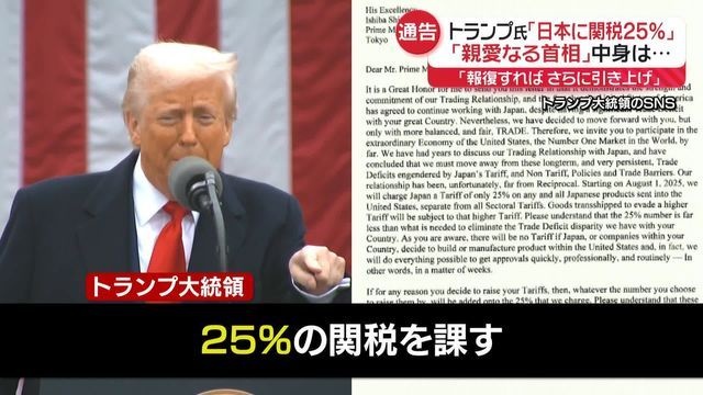 「8月1日から、アメリカに輸出される日本製品に対して25%の関税を課す」新たな関税率を告げる“トランプ砲”です。