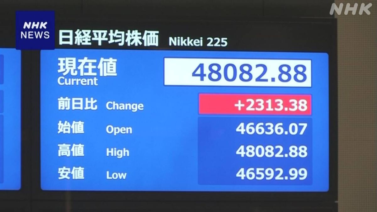 日経平均株価 初の4万8000円台 最高値更新 高市新総裁 選出 | NHKニュース | きょうの株価、株価・為替