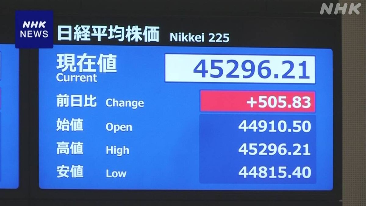 半導体をはじめ輸出関連の企業の株価が上昇したことで日経平均株価は一時、取り引き時間中の最高値を更新しました。
