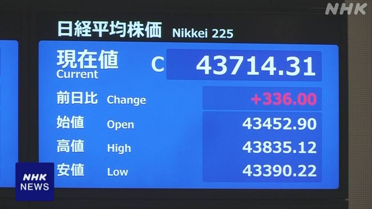 ▽日経平均株価、18日の終値は先週末の終値と比べて、336円上がって4万3714円31銭でした。