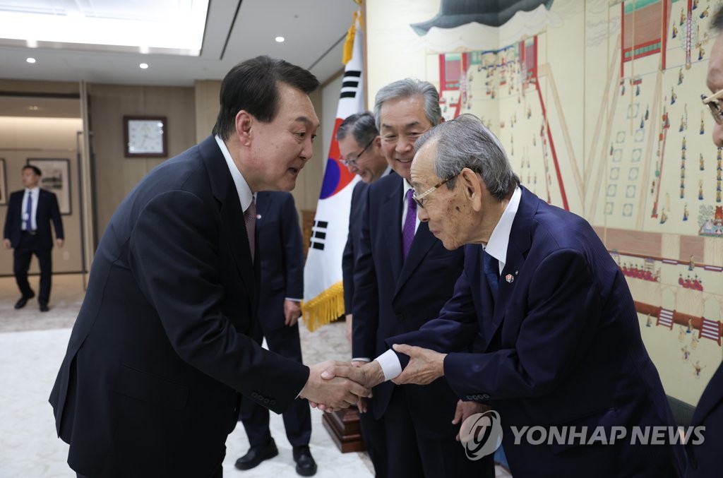【ソウル聯合ニュース】韓国の尹錫悦(ユン・ソクヨル)大統領は15日、「韓日・日韓経済人会議」出席のため訪韓した日本代表団と面会し「今後、両国の企業が半導体・バッテリー・電気自動車(EV)など先端産業分野で安定的な供給網の構築に向け協力していくことを期待する」と述べた。