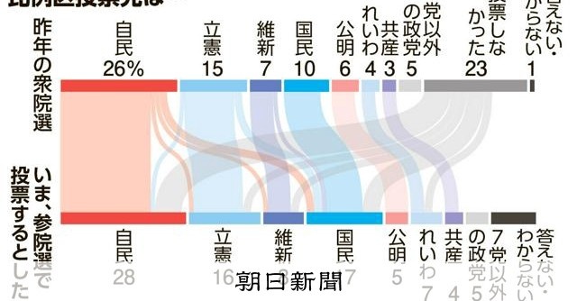 参院選比例区の投票先、目立つ国民民主とれいわの勢い 朝日世論調査:朝日新聞