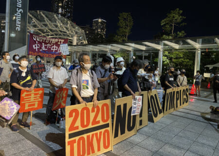 東京五輪開催を反対している有志が16日、都内で大会中止を求める抗議デモを行った。