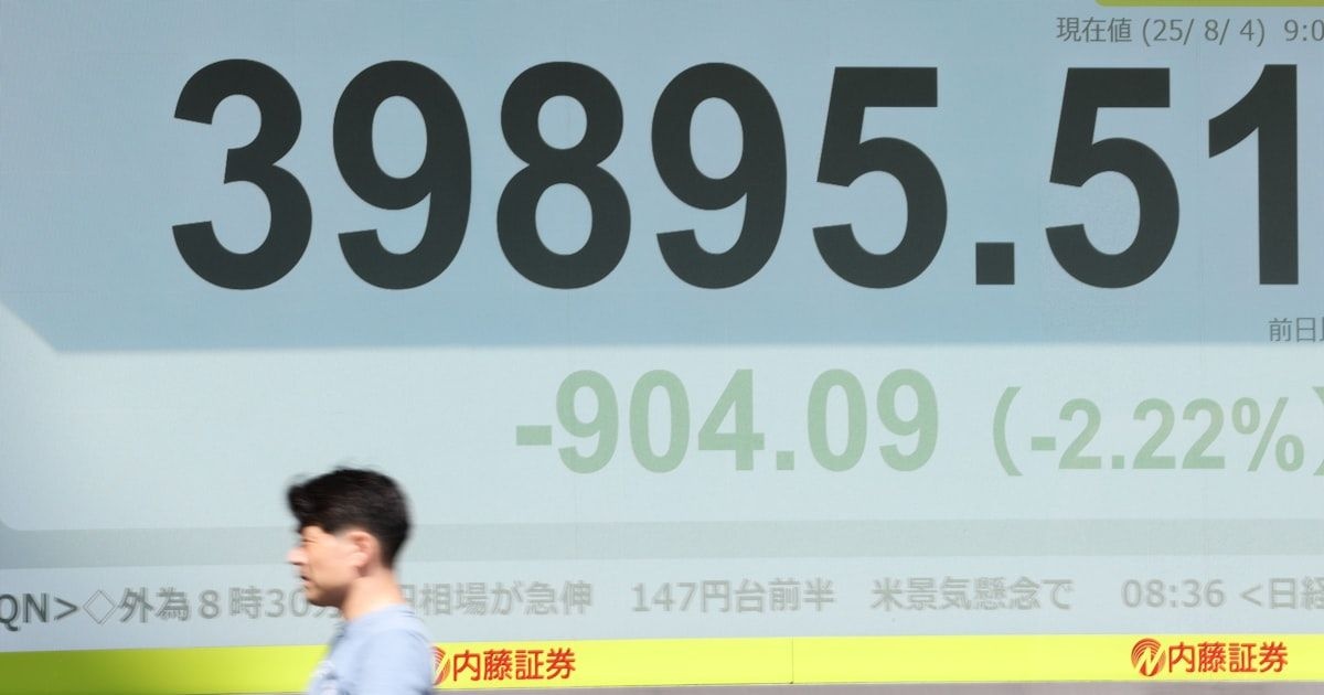【株価】日経平均、一時4万円割れ 米雇用悪化で売り加速