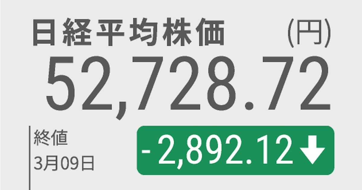 【株価】日経平均終値2892円安 吹き飛んだ「イラン楽観シナリオ」