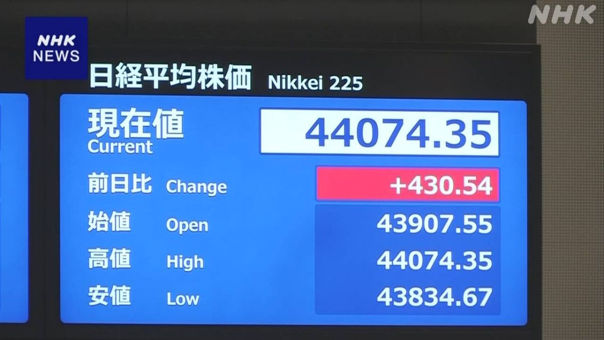 日経平均株価は一時、500円以上値上がりして取り引き時間中の史上最高値を更新し、4万4000円を初めて上回りました。