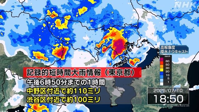 東京 中野区 渋谷区付近に記録的な大雨 災害の危険迫る | NHK【NHK】気象庁によりますと、午後6時50分までの1時間にいずれもレーダーによる解析で東京中野区付近でおよそ110ミリ、渋谷区付…www3.nhk.or.jp - 2 : 2025/07/10 19:36:07 Tqu4A