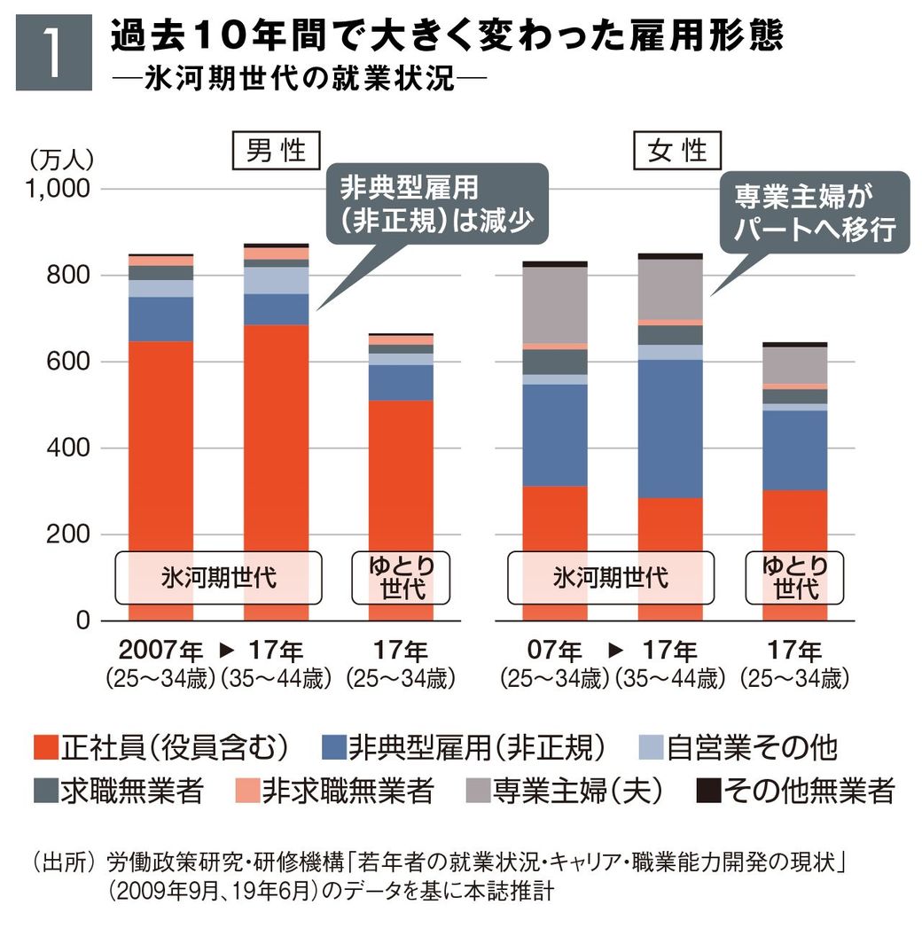 1991年のバブル経済崩壊で、日本の雇用状況は急速に悪化。政府は93~2004年頃に社会に出た人たちを、氷河期世代と位置づけており、現在は40~50歳代になっている。