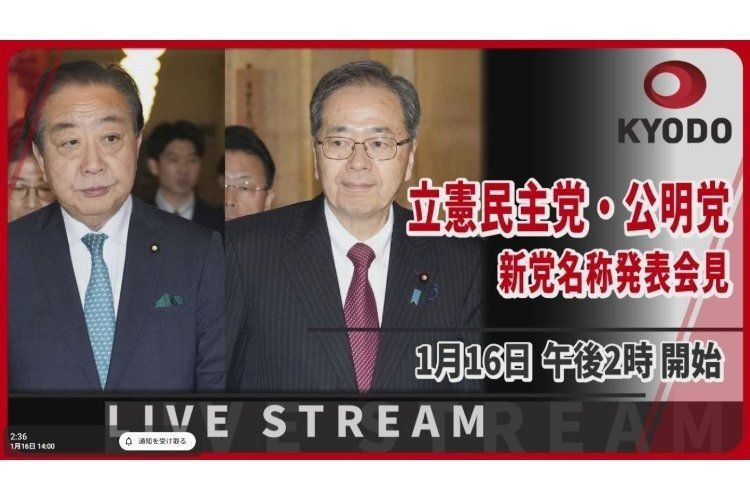 【ライブ動画】立憲民主党・公明党が新党「中道改革連合」発表会見、政策に「消費税減税」「生活者ファースト」 | 新潟日報立憲民主党の野田佳彦、公明党の斉藤鉄夫両代表は16日、国会内で記者会見し、新党の名称を「中道改革連合」と正式発表した。 野田代表は「生活者の視点に立ち、生活者ファーストの視点で現実的な政策を打ち出す…www.niigata-nippo.co.jp - 2 : 2026/01/16 15:46:03 WC7pa