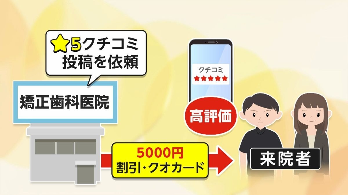 それと引き換えに、歯列矯正の総額から5000円割引したり、クオカードを提供したりしたということです。