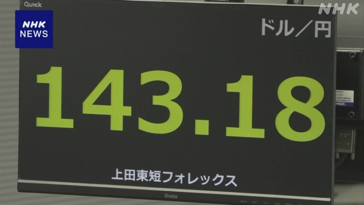 午後5時時点の円相場は、先週金曜日と比べて1円95銭、円高ドル安の1ドル=143円18銭~20銭でした。