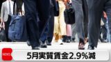 【物価上昇に賃上げ追いつかず】実質賃金は1年前と比べて2.9%減り5カ月連続のマイナス、2023年9月以来の大きな下げ幅