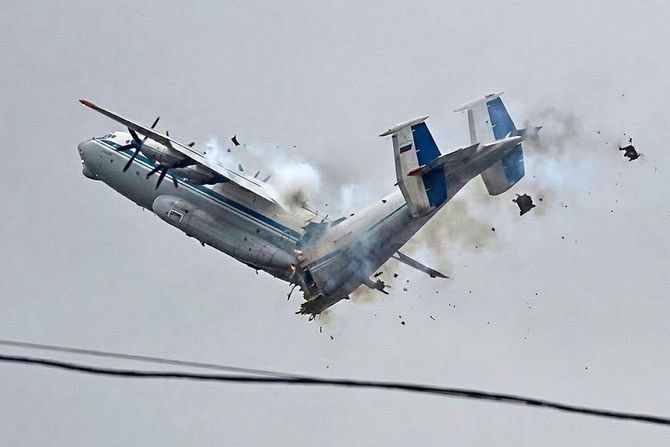 【画像】ロシア軍の輸送機An-22が空中でポッキリ