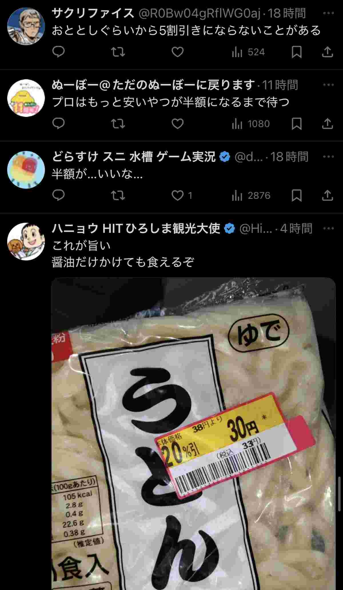 近所のスーパーは半額にならないと余ってるぞww