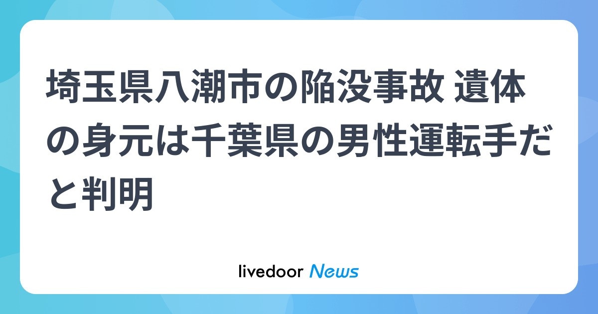 埼玉陥没事故、遺体は千葉の74歳男性運転手 - ライブドアニュース埼玉県八潮市で1月に県道が陥没しトラックが転落した事故で、県警は14日、現場近くの下水道管内で2日に見つかった遺体の身元を千葉県八街市の男性運転手(74)と明らかにした。遺族の希望などの理由で氏名は非公表news.livedoor.com - 2 : 2025/05/14 10:56:06 fsNV4