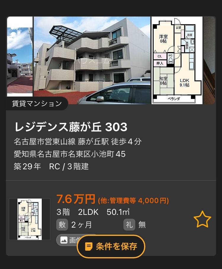 ちなみに名古屋の地下鉄沿線3LDK は7万しかも全物件地下鉄駅(人気の東山線・桜通線)徒歩10分以内
